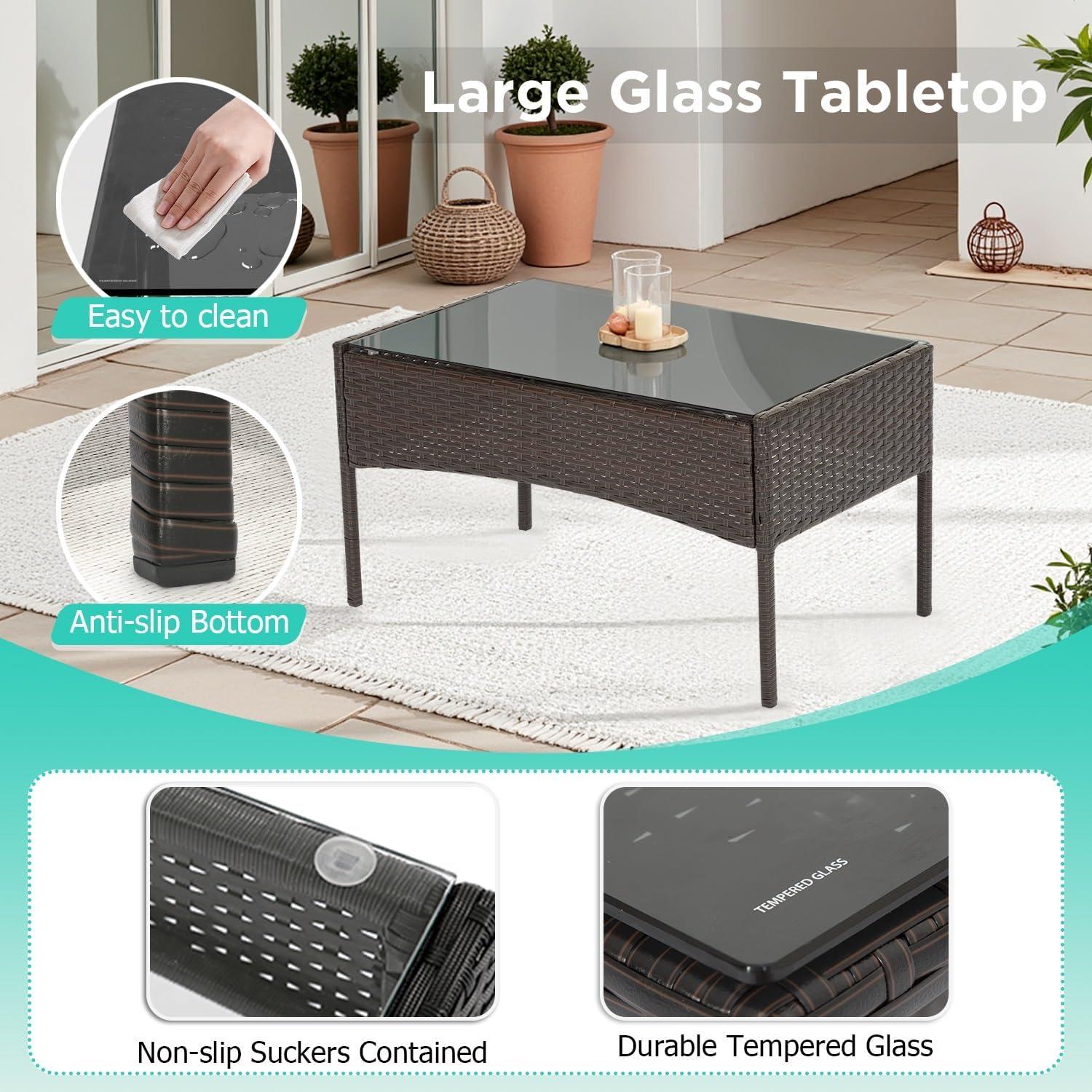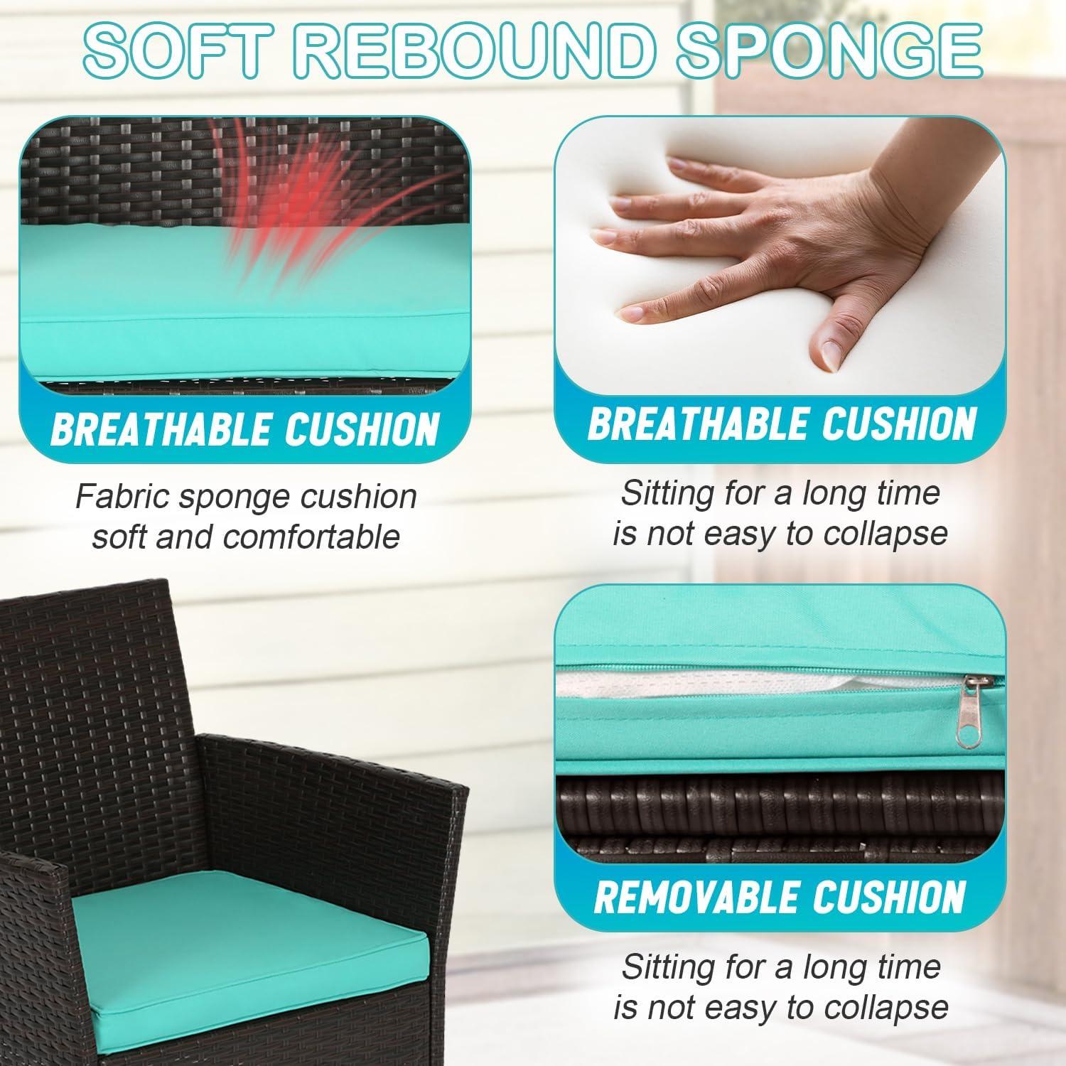 ❤ Convenient Cleaning : This outdoor patio furniture set includes soft sponge-filled cushions with removable covers for easy cleaning. The zippered cushion covers can be quickly removed and washed. The glass-top coffee table is simple to maintain—just wipe it with a cloth. The smooth surfaces allow for quick and effortless cleaning.