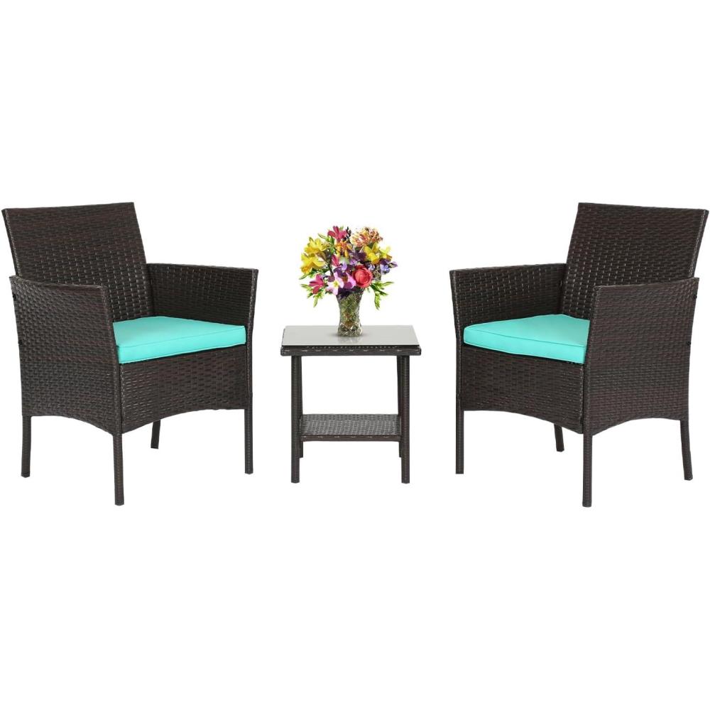imageFDW Wicker Outdoor Furniture Patio Furniture Set of 3 Rattan Patio Chairs Outdoor Chairs Patio Conversation Set with Coffee Table for Yard Backyard Lawn Porch Poolside BalconyBlackBrown and Blue