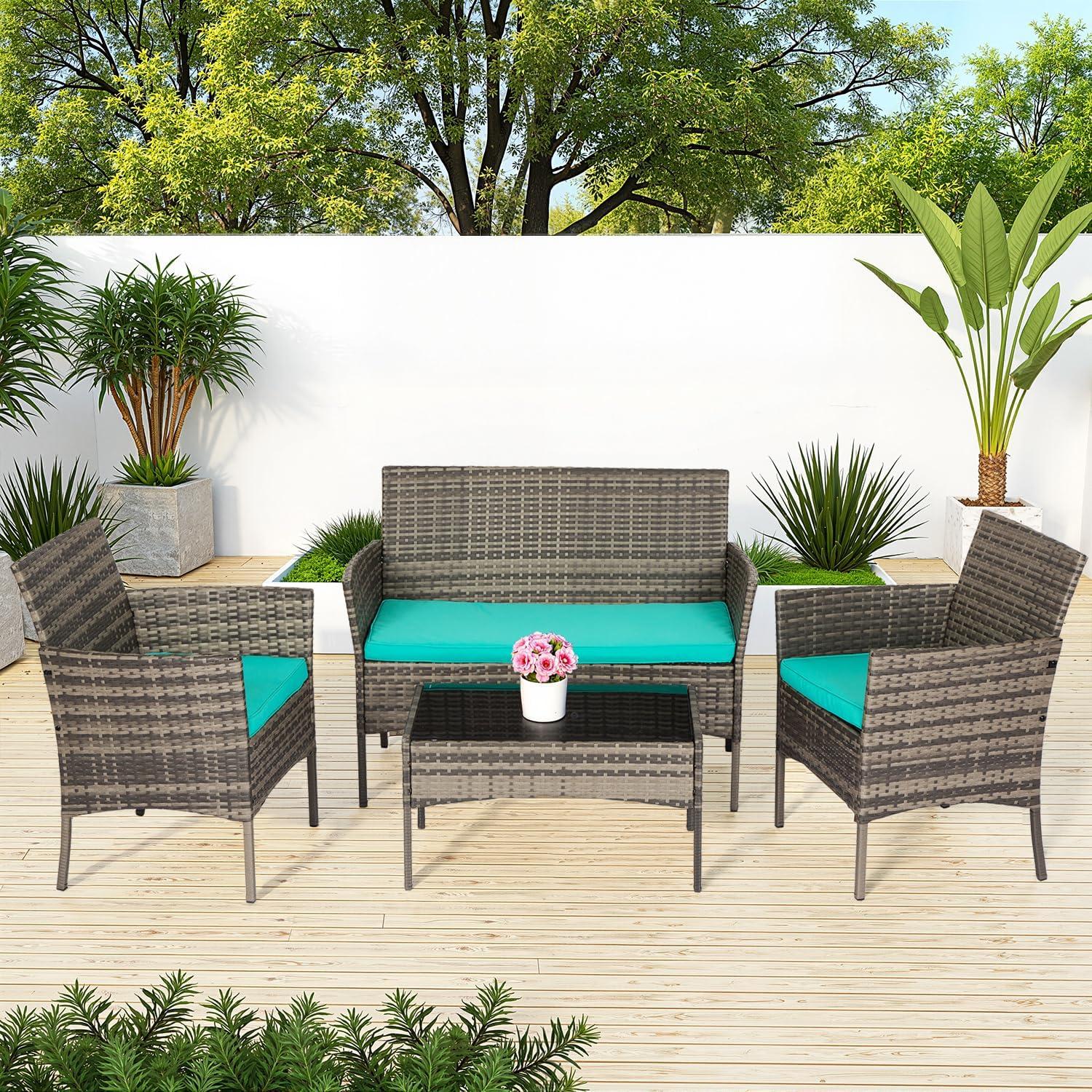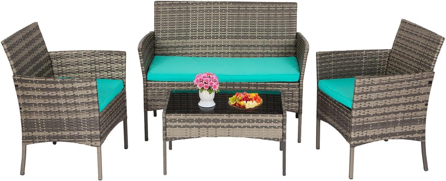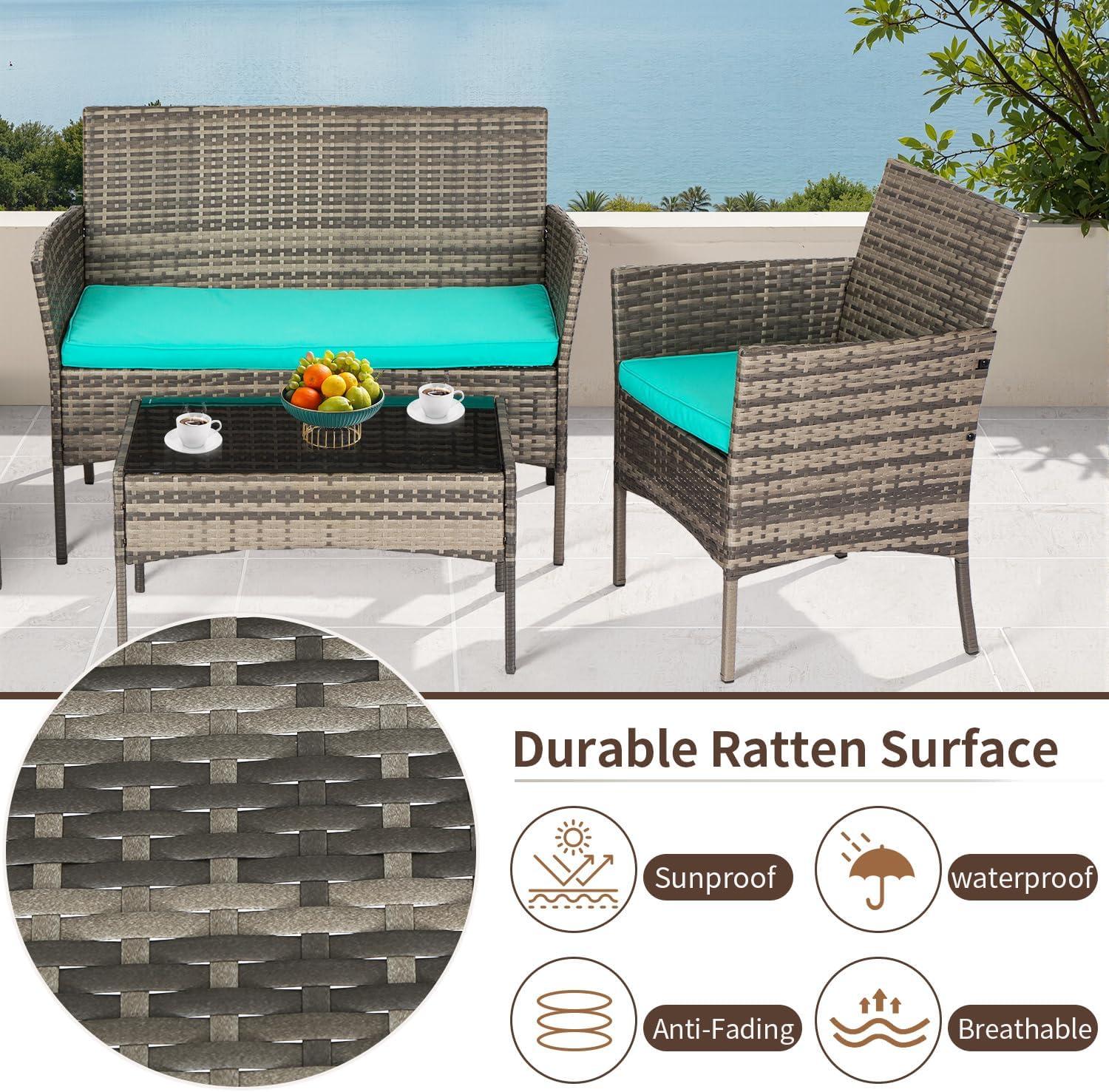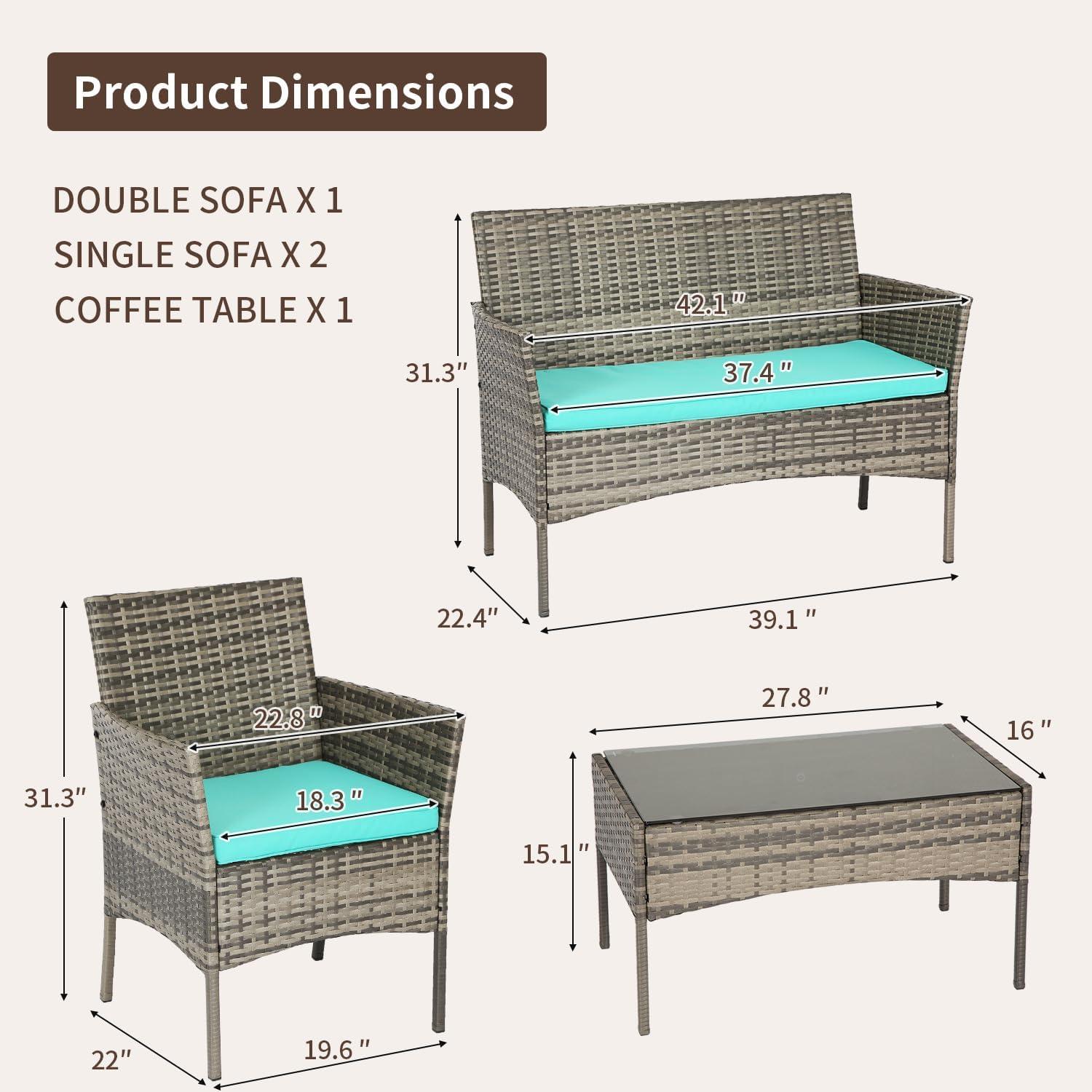 ❤ Convenient Cleaning : This outdoor patio furniture set includes soft sponge-filled cushions with removable covers for easy cleaning. The zippered cushion covers can be quickly removed and washed. The glass-top coffee table is simple to maintain—just wipe it with a cloth. The smooth surfaces allow for quick and effortless cleaning.