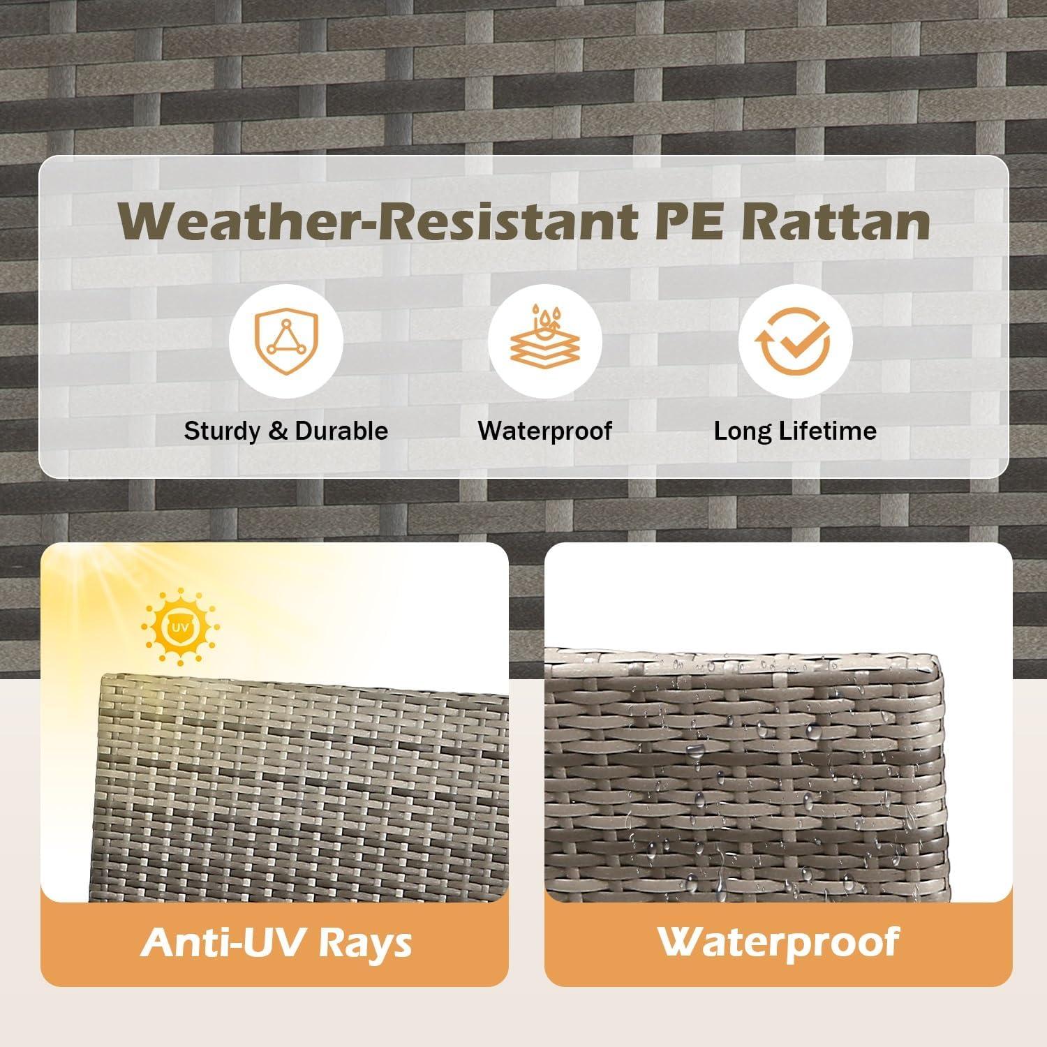 ❤ High Quality : This patio furniture set is made with a powder-coated steel frame and all-weather PE rattan wicker for a comfortable experience.The wicker of the Outdoor furniture set is sturdy but also very light. Each chair can hold up to 200 lbs weight capacity.