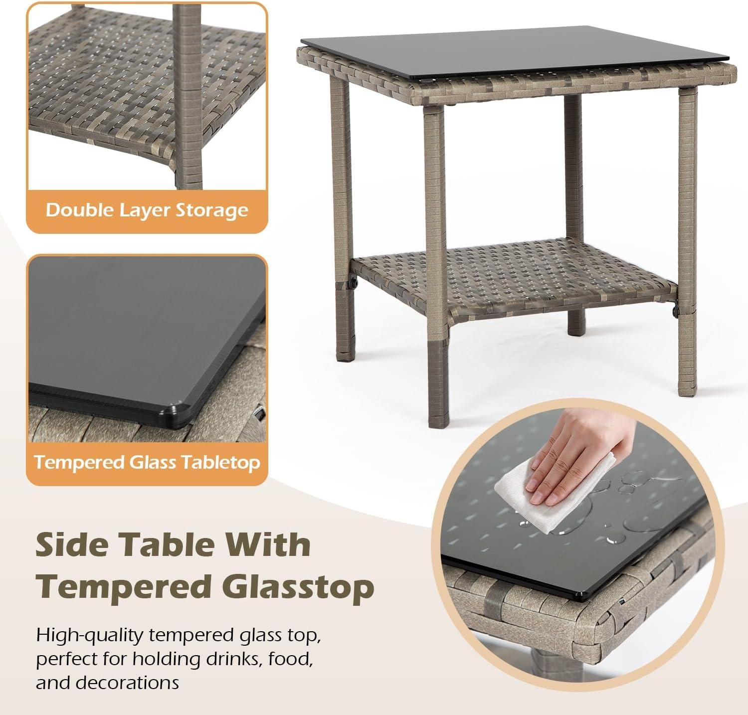 imageFDW Wicker Outdoor Furniture Patio Furniture Set of 3 Rattan Patio Chairs Outdoor Chairs Patio Conversation Set with Coffee Table for Yard Backyard Lawn Porch Poolside BalconyBlackGray and Khaki