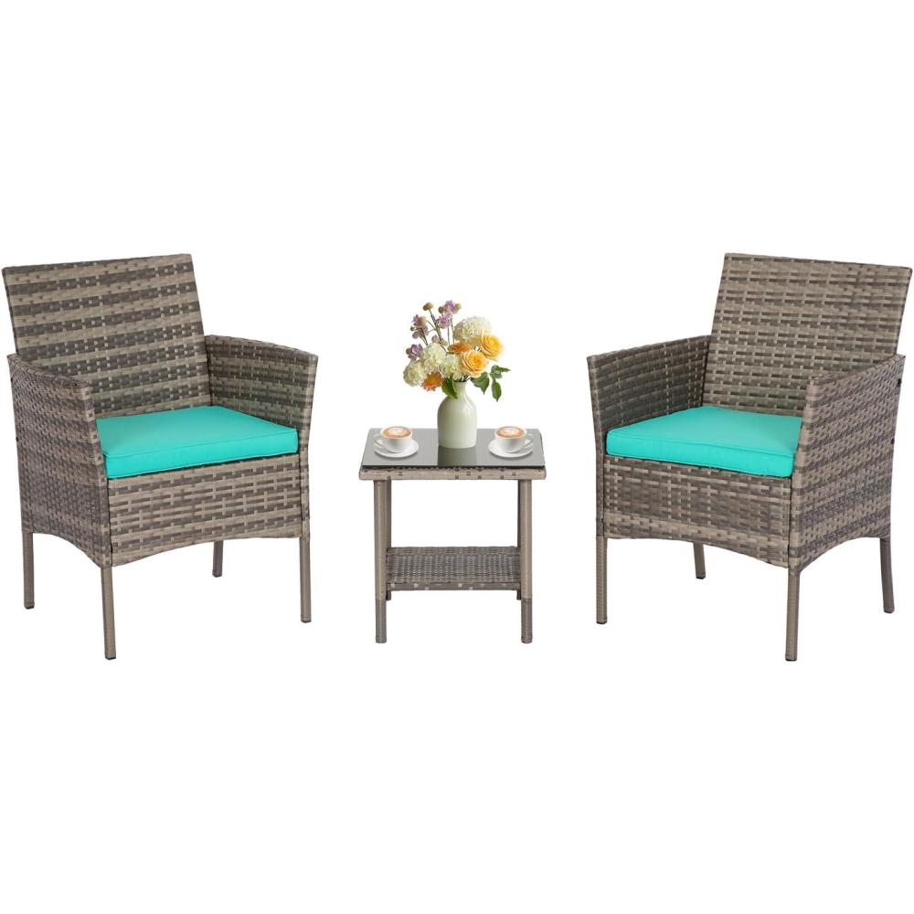 imageFDW Wicker Outdoor Furniture Patio Furniture Set of 3 Rattan Patio Chairs Outdoor Chairs Patio Conversation Set with Coffee Table for Yard Backyard Lawn Porch Poolside BalconyBlackGray and Blue