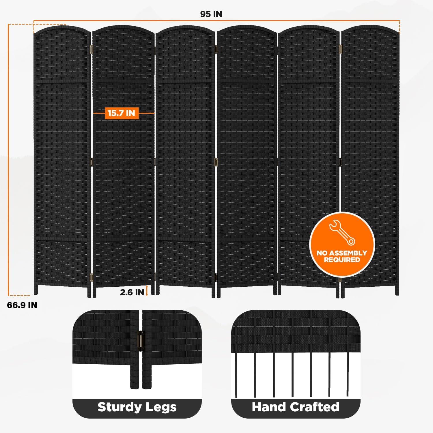 Extra Wide Folding Privacy Screen: Our partition room dividers equipped with 6 piece with 5.6 FT tall and 1.3 FT wide panels. This wall divider is made of waterproof and hand woven environmentally friendly material, perfect for indoor and outdoor. Beige folding room divider freestanding overall unit measures 66.9 in H x 94.5 in W.