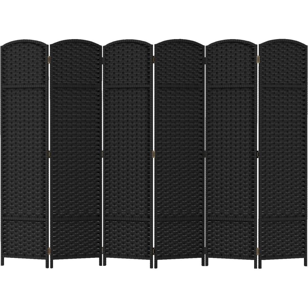 imageRoom Divider 6 Panel Screen 56 Ft Tall Partition Room Dividers Beige Privacy Screens Folding Room Separation Free Standing Waterproof Wood Frame Wall DividerBlack
