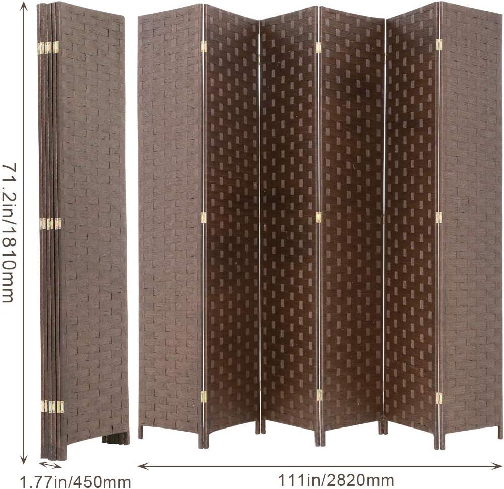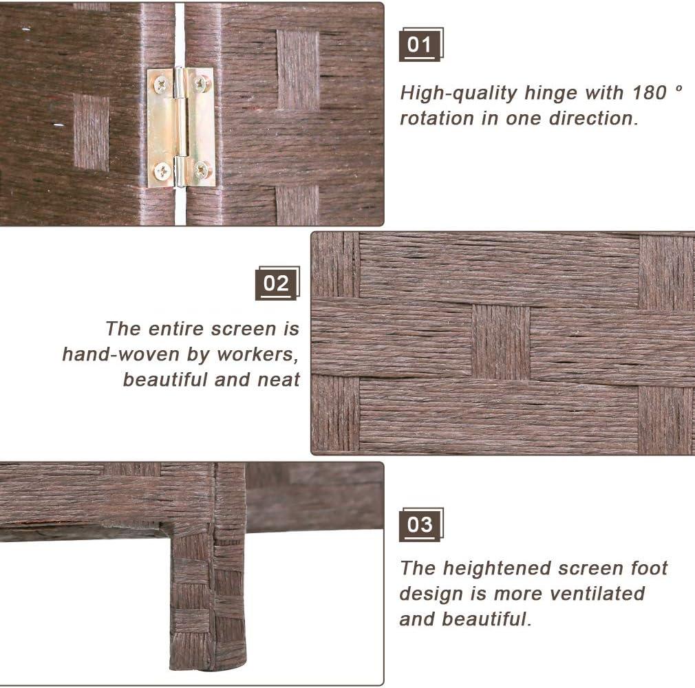 Room Divider Wood Screen 6 Panel Folding Portable Partition Screens Wooden Mesh Woven Design Room Screen Divider for Home Office (Black)(Brown)